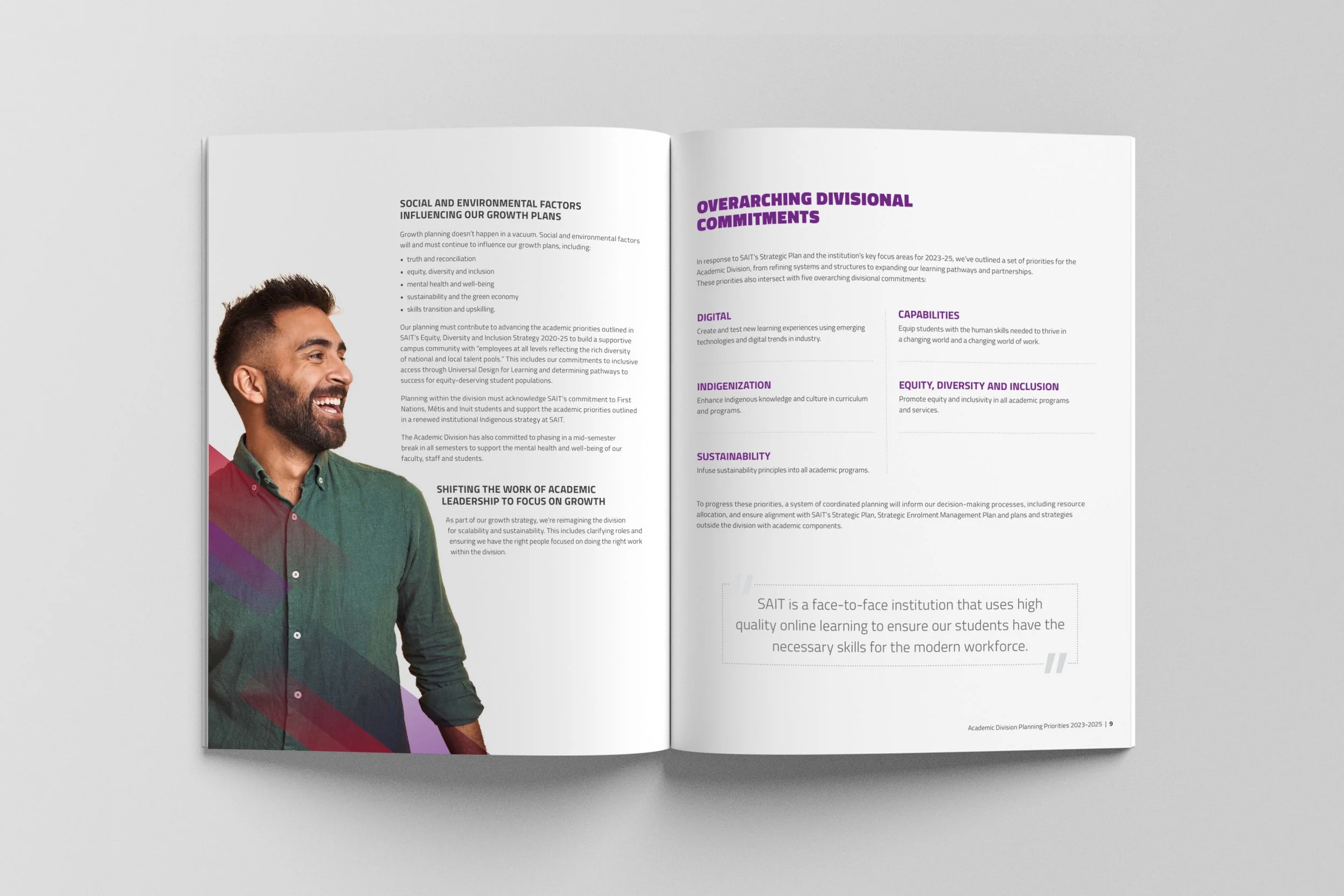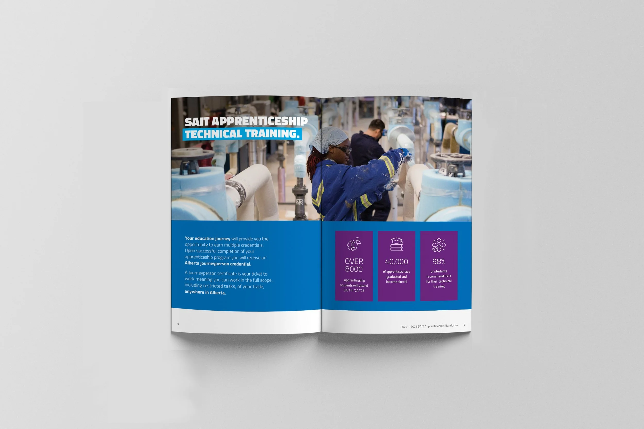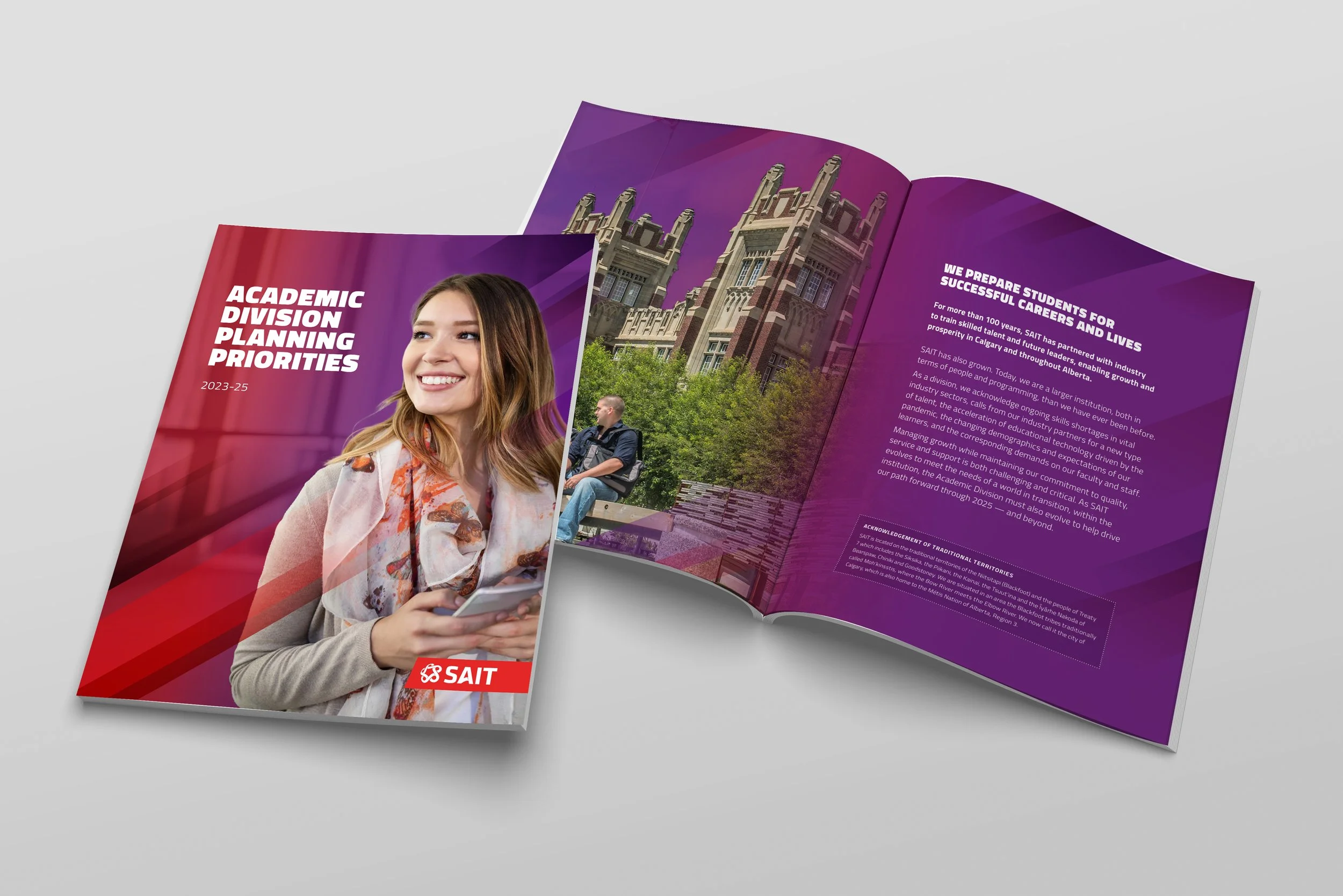 Working with SAIT has been one of the most rewarding parts of my design career. As a leading post-secondary institution, SAIT isn’t afraid to be bold, and neither am I. From eye-catching strategic reports to refreshed brand materials and everything in between, I’ve had the chance to help bring their message to life in creative, meaningful ways. This section of my portfolio showcases some of the projects I’ve worked on that reflect SAIT’s energy, innovation, and passion for shaping the future.
